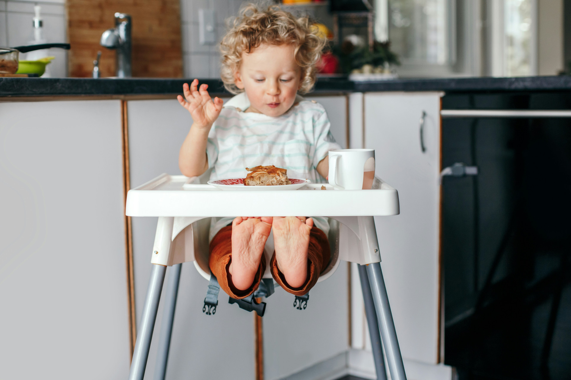 En integreret bakke gør det muligt for barnet at spise selvstændigt, også væk fra spisebordet. Det er praktisk i hverdagen og giver fleksibilitet, især i små køkkener.