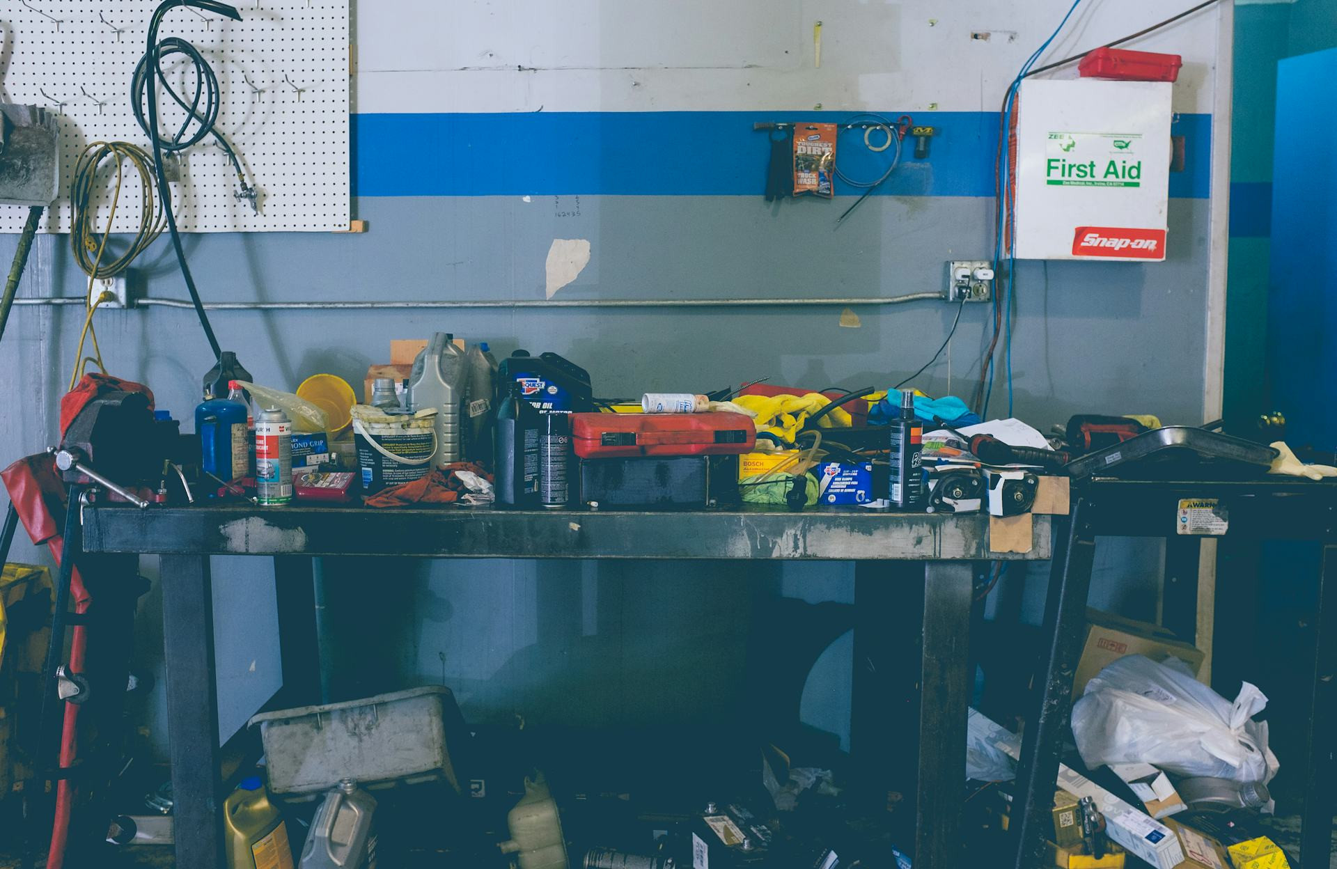 Et førstehjørne i garagen behøver ikke fylde meget. Det vigtigste er, at det er overskueligt og opdateret. Her er nogle ting, der bør indgå: